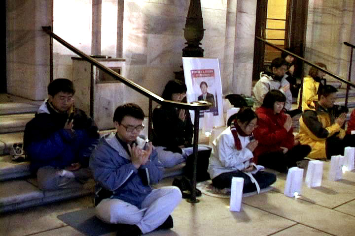 当晚明尼苏达州的亚美新闻(ASIAN AMERICAN PRESS)报社记者冒雨赶来,专程采访法轮功学员的呼吁活动。虽然明州天气寒冷,阴雨不断,一些本计划来的西方媒体由于恶劣的天气和集中报导美伊开战未能到场,但是学员们互相提醒保持正念,形成一个整体,坚信大法弟子的强大正念能冲破旧势力的安排,最大限度地救度一切可救度的众生。风雨中,学员们多次发正念,并一直坚持到活动结束。