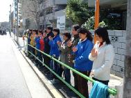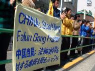 东京大法弟子3月21和22日在中领馆前,强烈抗议江氏犯罪集团3月21日对法轮功学员李祥春的荒诞审判。