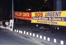 3月20日晚,在中国政府对法轮功学员查尔斯.李(李祥春)进行无理审判时,大法学员在爱荷华州府前集会,强烈抗议中国政府迫害人权的行径,呼吁立即无条件释放美国公民查尔斯。学员们向主要的州级官员们递交了有关法轮功和查尔斯在中国被迫害的材料,揭露所谓“审判”只是用来愚弄外界民众,中国江集团从违宪镇压法轮功以来从没有向法轮功群众讲过法律。当地媒体也预先为我们这次活动做了介绍。学员们的正念感召了善良的人们。有人专门赶来主动要为我们的活动提供帮助,有的在查尔斯的展板边坐下来支持我们,有的真诚地鼓励我们。