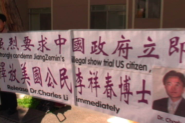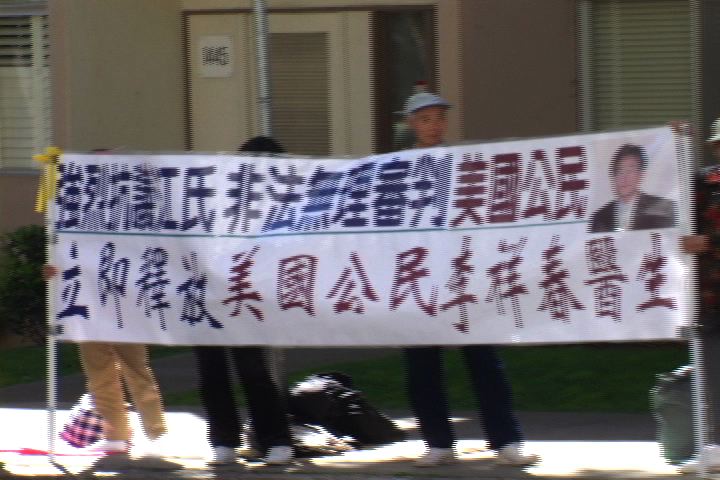 世界日报3月23日报导,为营救甫遭北京当局判刑3年的美国公民李祥春,一群法轮功学员从昨天上午10时起,到中领馆前展开连续48小时的守夜练功请愿。李祥春被北京当局指控意图破坏电视台,插播法轮功宣传影片。北京当局在21日当天判处李祥春,需服刑三年,李祥春被定罪的证据是手电筒、地图和CD唱盘。