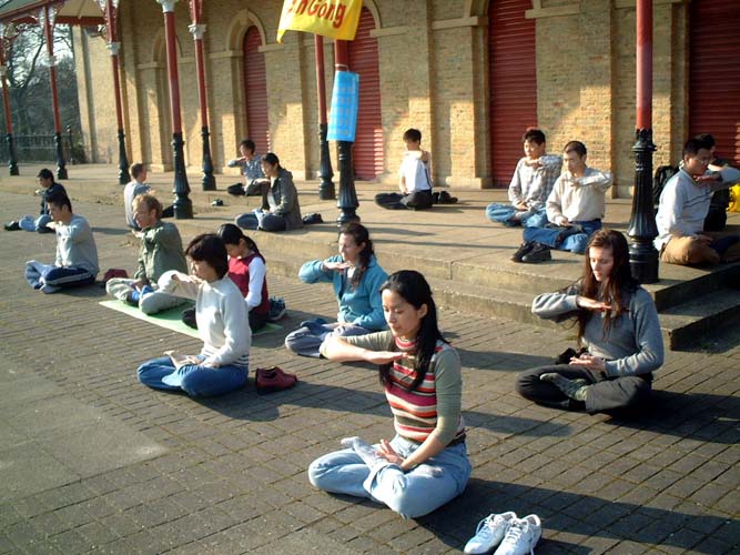 在正午灿烂的阳光下,弟子们一起到当地炼功点希顿公园集体炼功和教功,并向公园里的游人散发大法材料和讲真相。这一天,驻足观看和了解法轮功真相的游人比平时明显增多,一位住在邻近的桑德兰市的游人还建议大法弟子到那里去新设一个炼功点。