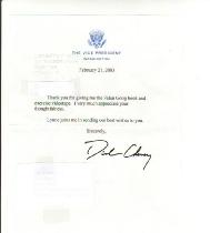 2003年2月21日,美国副总统迪克-切尼(Dick Cheney)致信法轮功学员,感谢向他赠送的法轮功书籍和炼功录象带,并代表副总统夫人琳(Lynn)共同向法轮功学员致以最美好的祝愿。