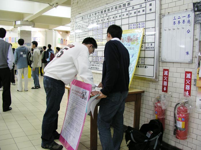 我在上课前也去找教授说明这个活动,其中有一个教授签了名,也愿意让我在课堂上利用5分钟的时间跟同学们说,另一个则是愿意在下课时让我说;有一个同学在签名之后,主动愿意帮我拿去给别人签名……过程中有许许多多想不到的事发生。