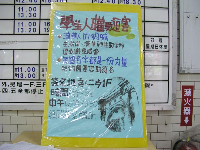 一直到记者会前,总共有将近1000左右的人签名,我相信几乎所有的交大学生都知道这件事,因为在过程中,很多人都表示,他们已经看过网宣或是海报等资讯,八、九成的人在我们说明来意后,愿意签名声援,整个交大很支持这样的活动,反对对学生人权的迫害。很多人听到他们是只因为修真善忍,就遭到开除学籍、不准注册、被判刑,甚至迫害致死,表示很惊讶、震惊,因为在台湾,这种事情是不可能发生的。而交大学生会在知道这件事后,也愿意支持声援,并签名盖章。