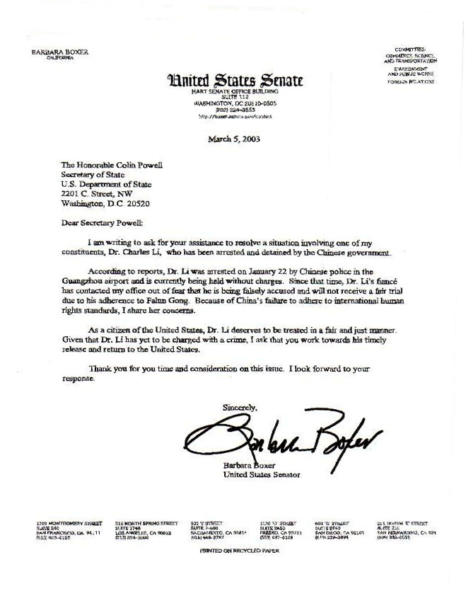 作为一个美国公民,李先生有被公平合理对待的权利。李先生至今还未被提出犯有任何罪名,我请求您设法让他能够被立即释放返回美国。
