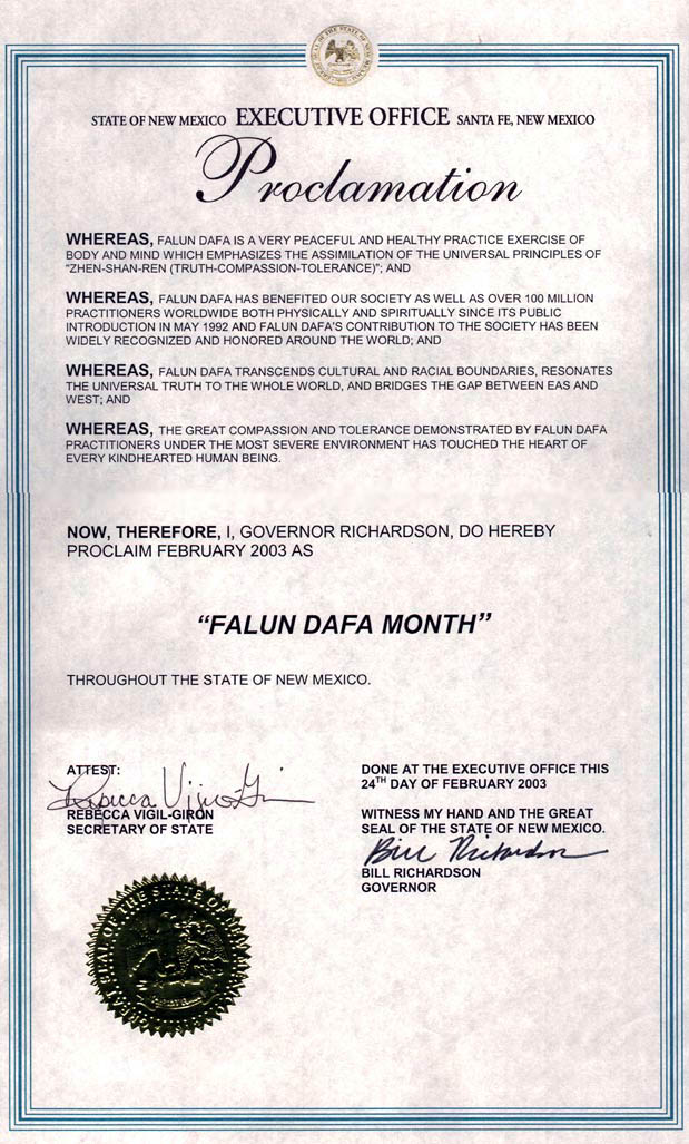 鉴于,法轮大法超越文化和种族的界线,让宇宙真理在全世界回响,并架起了东西方沟通的桥梁;并且