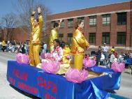4月12日,南加州部份大法弟子应邀参加在帕莎迪那市的世界太极气功日庆祝活动,祥和强大的能量场就吸引了众多气功爱好者的目光,很多中西人士纷纷索要资料讯息。教功时,学习者由一个变四个,四个变十个,后来很快就围上来密密的两三层,场面颇为壮观。