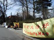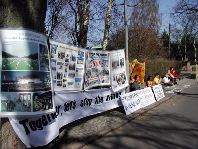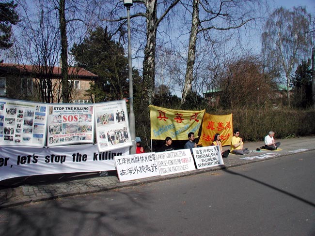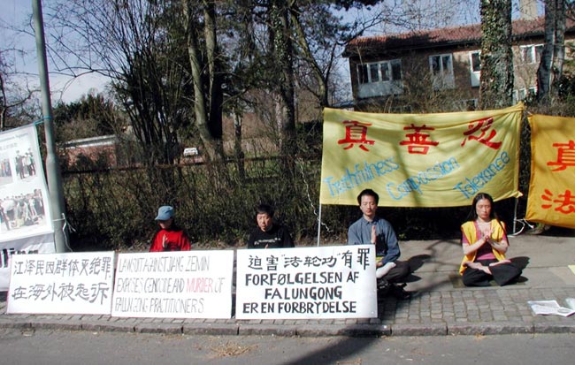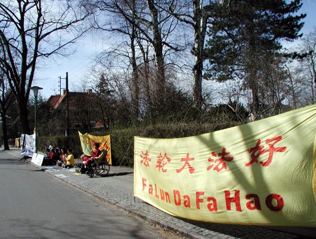 【明慧网2003年4月19日】从4月17日到4月21日,是欧洲复活节假日,这是欧洲除了圣诞节之外第二大节假日。今天丹麦大法弟子和部分临近城市的瑞典弟子来到中国大使馆门前,继续发正念,清除另外空间对江××所犯下的“群体灭绝罪”的法律诉讼案的邪恶干扰。