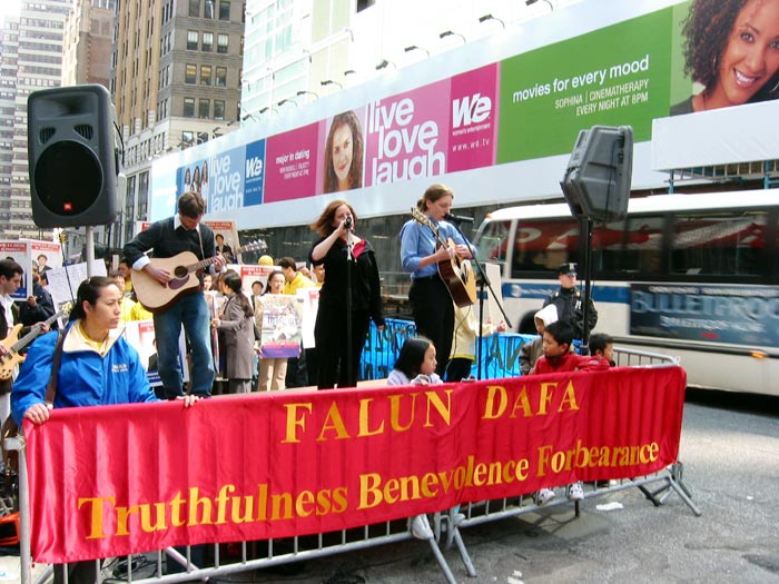 “中共撒谎 百姓遭殃”--五百余位法轮功学员和支持者会集纽约时代广场(图)