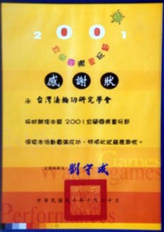 2002年10月20日,2001宜兰国际童玩节感谢状