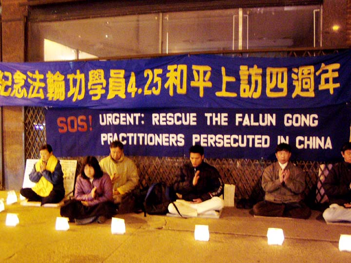 休士顿大法弟子中领馆前烛光纪念“4.25”四周年(图)