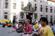 4. 纽约法会期间大法弟子集体炼功和游行(图)