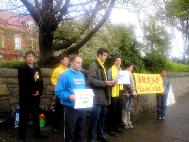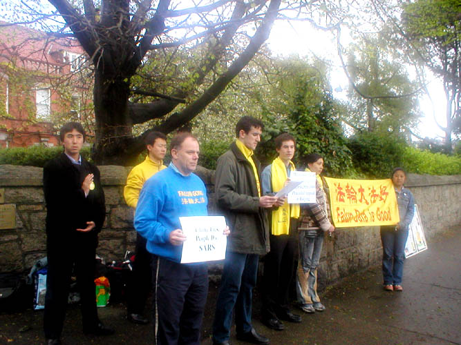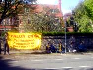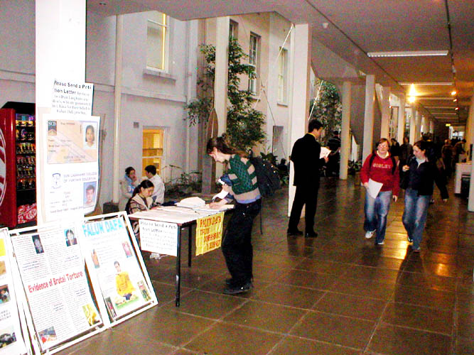 与此同时,爱尔兰大法弟子在首都Dublin(都柏林)的两个大学── 三圣一大学Trinity 和 DCU(都柏林城市大学)里举行了征签活动,营救爱尔兰的两个大法弟子刘锋和杨方。