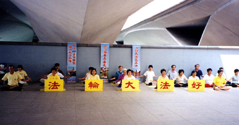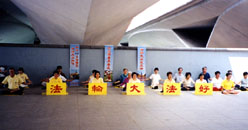 纪念“4.25” 西班牙法轮功学员中使馆前要求中国政府立即停止迫害法轮功(图)