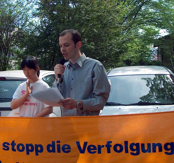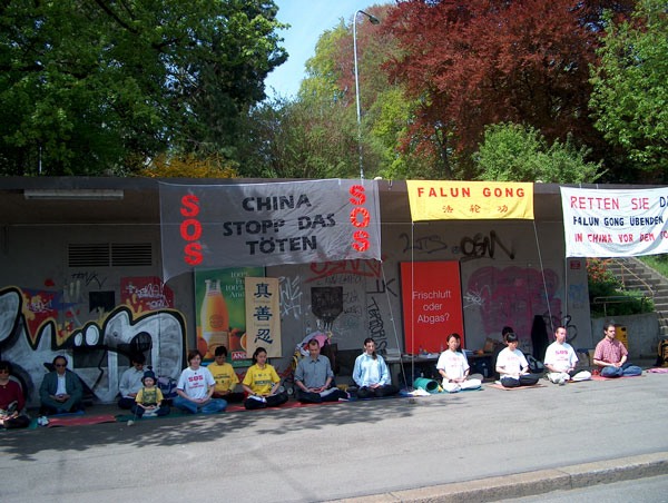 4月25日,西班牙法轮功学员来到中国驻西大使馆前,纪念四年前的4.25万名法轮功学员和平上访的伟大壮举,纪念在四年的镇压中被无辜迫害致死的670位法轮功学员。强烈要求中国政府立即停止对法轮功的迫害。