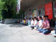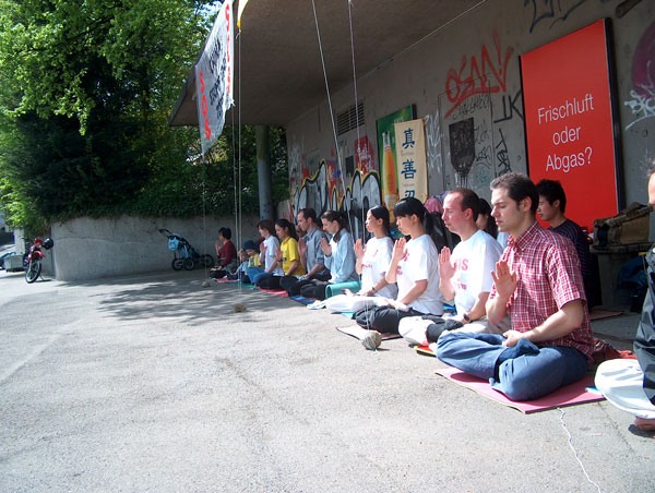 4月25日,在法国大法弟子纪念4.25万人和平上访四周年集会上,来了一对印第安人模样的母子,和我约好星期天上午炼功点见。星期天到了炼功点,一眼就看见了几米外那母子俩手牵着手走来了。母子俩来自南美,都对中国气功很感兴趣。他们认真学炼了第一、二、五套功法,赞叹“神通加持法”优美、令人感到舒适。