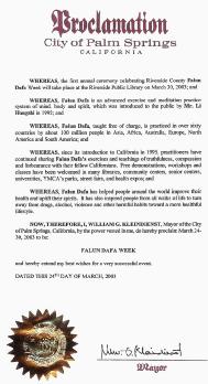 鉴于,自1995年法轮大法传入加利福尼亚州以来,学员一直与本州居民分享功法及真、善、忍的原理。免费的示范,讲座和教功在许多图书馆,社区中心,老年中心,大学,青年活动中心公园,街区节日,以及健康博览会上深受欢迎;并且