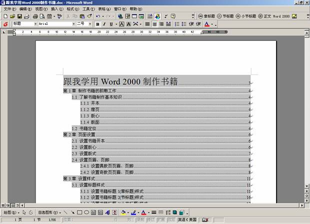 Word 2000就会根据你的上述设置自动创建书籍目录并插入到文档指定位置。如图2所示。