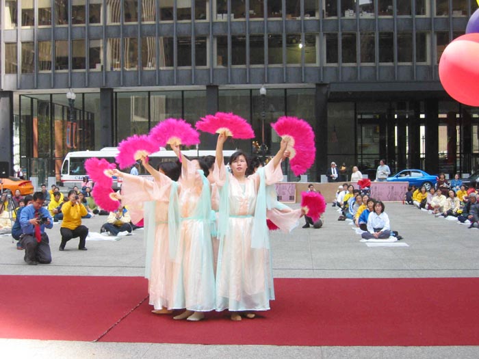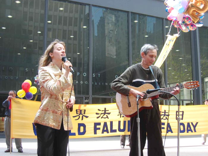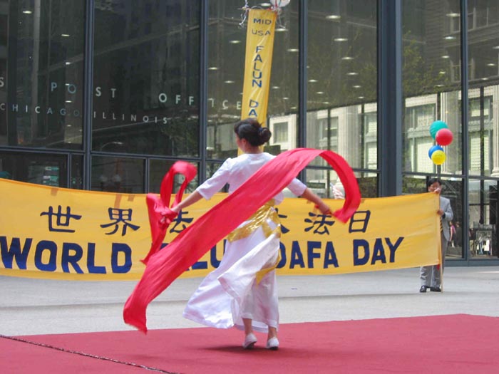 【明慧网2003年5月12日】5月9日,芝加哥及美中地区的大法弟子在位于芝加哥市中心的美国伊利诺伊州北区联邦法院对面的联邦广场上举行大型活动,庆祝世界法轮大法日,庆祝美中法轮大法月。
