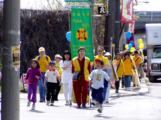 5月10日,渥太华学员举行了一天的活动。上午11点左右,庆祝游行开始了,大家手持写着“法轮大法好”、“法轮大法真善忍为世界带来美好”等横幅、展板沿普莱斯顿街、中国街,伴着“普度”、“济世”的乐声缓步前行,沿途许多学员为过往行人发资料、讲真相。许多路人面带微笑与学员交流,一位行人说:“我知道中国正在迫害法轮功,我知道你们是和平的,祝你们好运!”许多当地华人也向我们表示友好,微笑着接过学员递过来的资料。