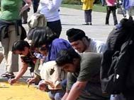 结束了演讲,学员们继续游行至国会山,一路上,游人如织,许多过往车辆向游行队伍鸣笛,向学员挥手,竖起拇指……一些行人拿起笔来,在金黄色的请愿布上签名支持。