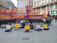 5月11日,部份意大利大法弟子在米兰卡而度修广场举行法轮大法日庆祝活动。