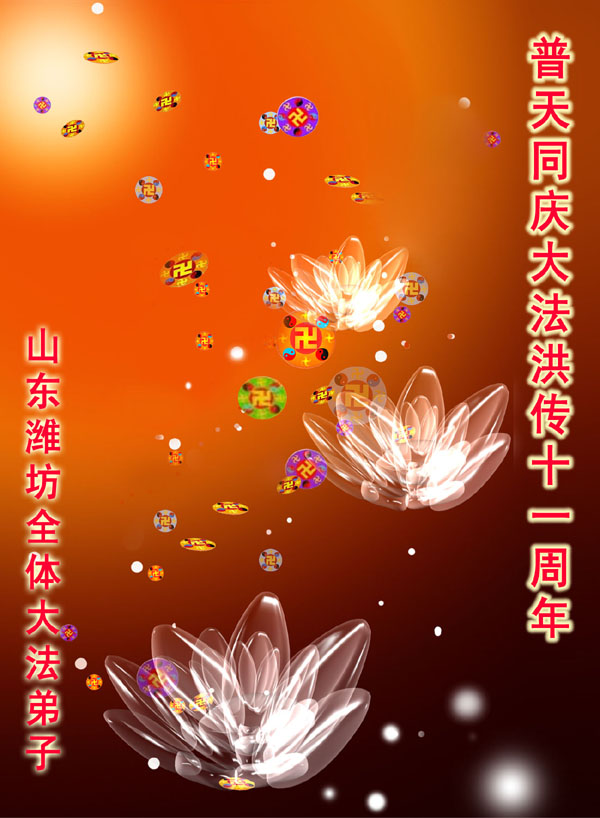 • 山东潍坊全体大法弟子恭贺第四届世界法轮大法日暨师尊传法十一周年