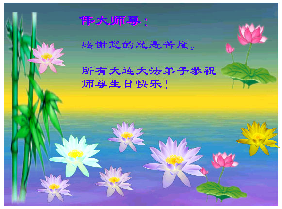 • 辽宁省盘锦市大法弟子遥祝师父生日快乐!