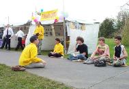 【明慧网2003年5月14日】5月10日和11日纽约上州的10多名法轮大法学员参加了一年一度在罗城高地公园举行的丁香花节集市的洪法活动,同时也和游人们共同庆祝5月13日的世界法轮大法日。每年的罗城丁香花集市活动都能吸引当地数十万的游人。今年也是罗城的法轮大法学员第四次参加集市的活动并在第一周的周末申请了展位。
