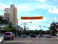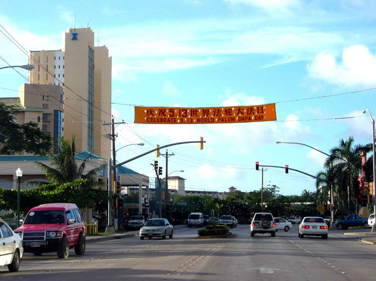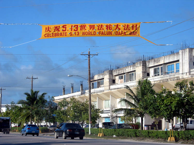 横跨交通要道的大横幅──塞班岛大法弟子庆祝“大法日”(图)