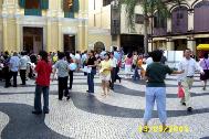 晚上八时起,弟子们又齐集在中联办对面的花园内,发正念、学法、交流修炼心得体会。弟子们一致认识到,澳门大法弟子人数不多,更要注重互相协调,整体提高,抓紧时间做好三件事,绝不辜负师父的慈悲苦度,不辜负“正法时期大法弟子”的称号。