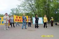 【明慧网2003年5月15日】5月13日世界法轮大法日,莫斯科和彼得堡大法学员再次来到在莫斯科中使馆前和平请愿,强烈要求中国政府停止镇压法轮功和法轮功学员,同时向路人讲清真象。学员们以此特殊的方式庆祝世界法轮大法日。学员们举着中、俄文标语:“停止