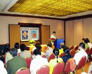 法会在一片庄严,祥和的气氛中开始。学员们在发言中坦诚相见,对自己在修炼中存在的不足做了深刻的剖析,每一位在场的学员都深受感动,大家沐浴在一片祥和慈悲的气氛中。几位没有准备发言稿的学员也纷纷上台畅所欲言。值得一提的是,这次法会,学员在交流中冲破了旧有的观念,提到了很多在修炼中自己一直存在的误区或长久以来一直干扰自己的不好的思想。每个学员都感觉受益颇多。法会快要结束时,大家还意犹未尽,都不愿离开。