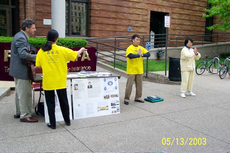 匹兹堡大学的一些工作人员已经从新闻中得知贾晓梅女士已经获释,纷纷向她的丈夫—徐才录博士表示祝贺。以前为营救贾晓梅而签过名的学生都为贾晓梅的获释而感到高兴,这一次又积极为营救法轮功学员李祥春医生和杨景芳女士而签名。有学生还表示要给州议员写信呼吁营救他们。一位政治系的教授对法轮功产生了极大的兴趣,希望秋季开学后能邀请我们为他的学生举办专题讲座。