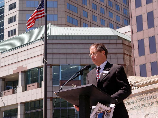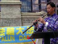 | 俄亥俄州立大学经济学教授、法轮功学员露西亚-顿恩(Lucia Dunn)发言 | 俄亥俄州议员戴尔-米勒(Dale Miller)发言 | 正法之路图片展 |