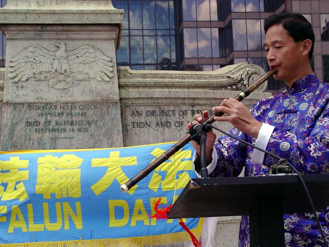 | 学员演示法轮功的五套功法 | 箫独奏“普度”、“济世”等 | 舞蹈“莲花颂” |