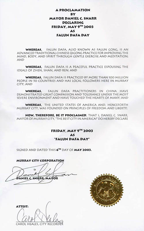 鉴于,在50个国家有上亿人修炼法轮大法,其中包括我们玛瑞市(Murray);并且