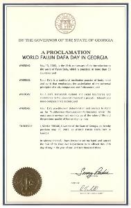 因此,我,乔治亚州州长桑尼-普杜,在此宣布2003年5月13日为乔州世界法轮大法日。