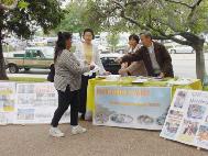 在活动中,学员们体会到,从1999年江××集团镇压法轮功以来,虽然我们一直在利用各种方式向世人讲清真相、揭露邪恶,还是有很多人不了解甚至没听过法轮功,有的被谎言所欺骗;而他们都是应该被救度的众生。现在江××和610办公室在海外被起诉,以及美国公民李祥春在大陆被非法关押等事情,正是我们可以用来揭露邪恶,讲清真相,救度更多可被救度的人。做到师父在“快讲”中说的“大法徒讲真相,口中利剑齐放。揭穿烂鬼谎言,抓紧救度快讲。”