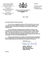 宾西法尼亚州众议员致信庆祝法轮大法日