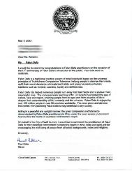 2003年5月5日加拿大法轮大法协会沙省分会亲爱的温得里姆女士,值此法轮大法向公众传出11周年之际,我想向法轮大法修炼者及李洪志先生表示我的祝贺。