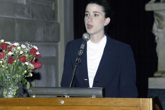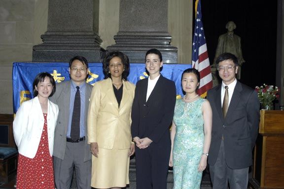 宾州副州长主管助理傅莱韦亚·科根表示,要提倡精神追求,很佩服面对残酷迫害法轮功学员几年来所表现出的和平抗争,谴责中国××党对追求真善忍的人的不公正的迫害。当她在哈佛大学读书时看到校园里有炼法轮功的,就被法轮功的免费教功吸引了。因为现在没有多少东西是免费的。她鼓励每一个人都要告诉周围的人法轮功被迫害的真象。随后科根宣读了副州长对法轮大法的褒奖信:“鉴于宾州很多公民炼习法轮大法,并以真善忍原则作指导;鉴于法轮大法穿越文化、社会、经济和国家界限,我代表所有宾州人在这个特殊的日子里表达我最美好的祝愿。”
