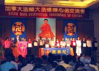 会上还宣读了加拿大文化传统部部长给交流会的贺信以及加拿大几十个城市给法轮大法的褒奖,同时宣读了北京大法弟子给法会的贺词。