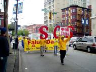 加拿大温哥华举行盛大的庆祝大法洪传十一周年游行(图)