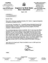 正如你所知,查尔斯.李医生的被拘留使得中国政府不断地受到国际压力。中国的司法系统的行为无可非议地引起国际社会的不安。同时,我也为中国政府缓慢的司法改革而感到愤怒。