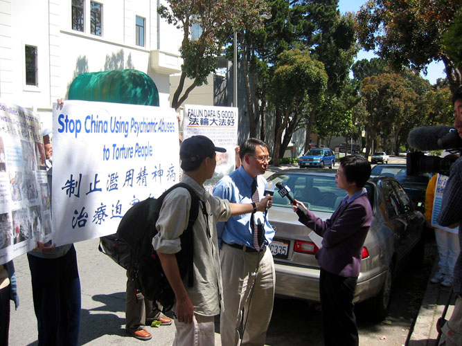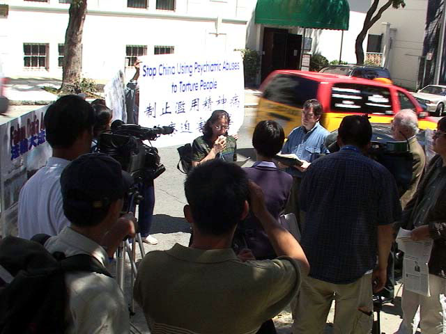 【明慧网2003年5月23日】5月21日下午2时,三位美国精神病科专家在旧金山中国领事馆前举行记者发布会,介绍世界精神病学协会(WPA)于5月20日刚刚决定发表的声明。声明强烈要求中国政府就用精神病医院进行人权迫害,「无条件」接受世界精神病学协会「独立调查」。