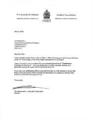 尊敬的X女士,我接到您五月一日的来函,得悉你们将欢庆法轮大法洪传十一周年。
