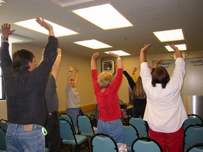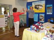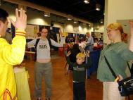 讲座之后,一对从肯塔基州来的夫妇来到我们的展台,那位男士告诉大法弟子说,他患有严重的全身性关节炎,不能做剧烈运动。今天尝试了法轮大法轻柔简单动作后,感到全身发热,很是舒畅,很想进一步学习。由于他来自外州,大法弟子就将法轮大法的网址告诉他,让他和当地的大法弟子联系。他们的一个同伴意犹未尽,坚持让大法弟子将所有的功法全部展示给他看,并将大法弟子炼功的场面拍摄下来留念。
