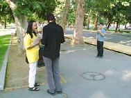 一位女士在听到法轮功时问我们是否可教她功法,因为瑞葛德市没有学员。我们说这当然没问题,而且如果未来她知道有更多人要学法轮功,可以告诉我们,我们会再来教他们。她对我们的提议非常感动并问:“如果你们都不收费,你们如何解决教功的费用问题?”我们告诉她:“我们和其他人一样要工作、要就学,在介绍法轮功时,我们是真正发自内心地在教功,如果你想学,我们绝对会帮你。”