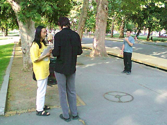 活动包括在接近市中心的Széchényi公园展示功法,以及分送简介给瑞葛德市的居民。我们在分送简介时发现当地人很乐意接受真相简介,一些人还停下来等着拿简介。我们也造访了当地的中国超市,发现那边的人思想很开通,有些人已知道真相,知道江氏政权迫害法轮功的罪行。